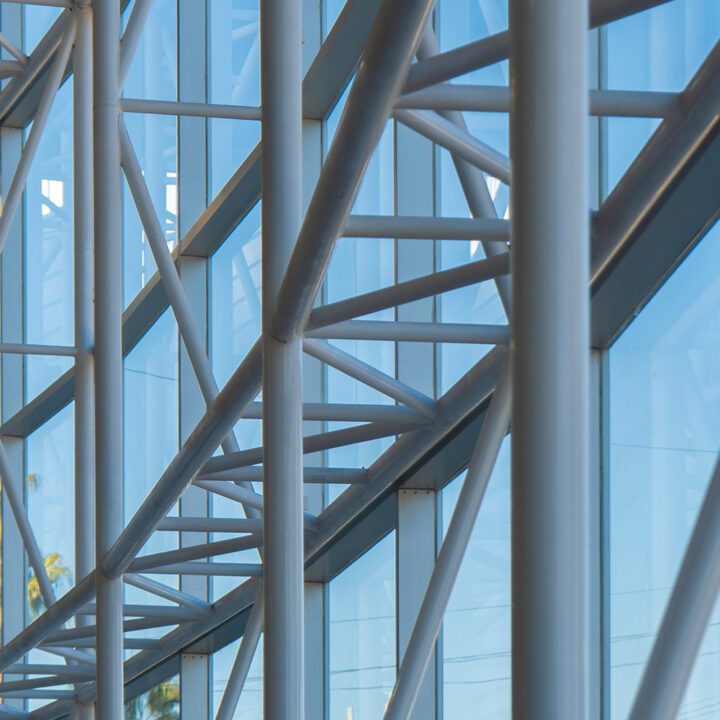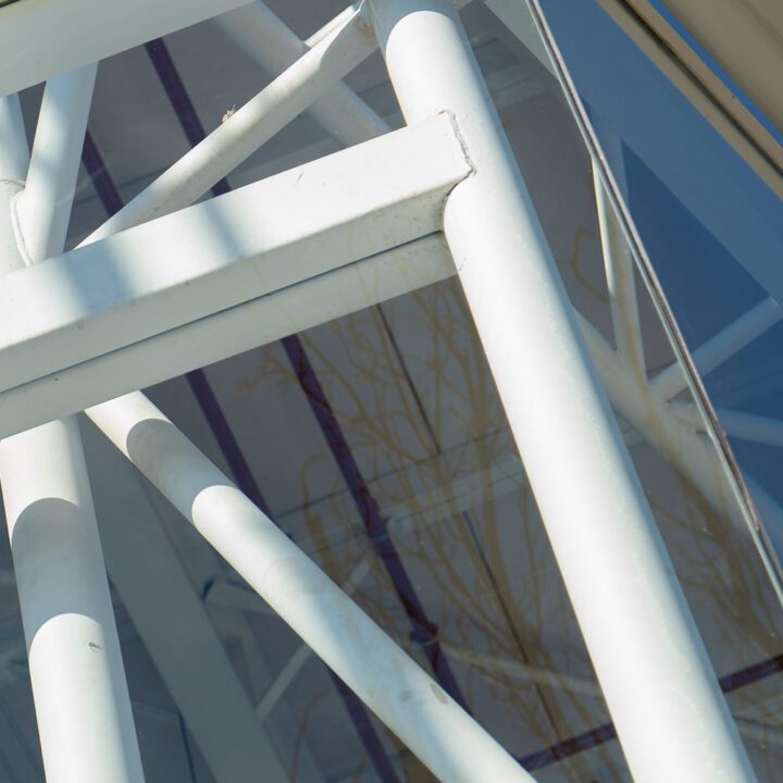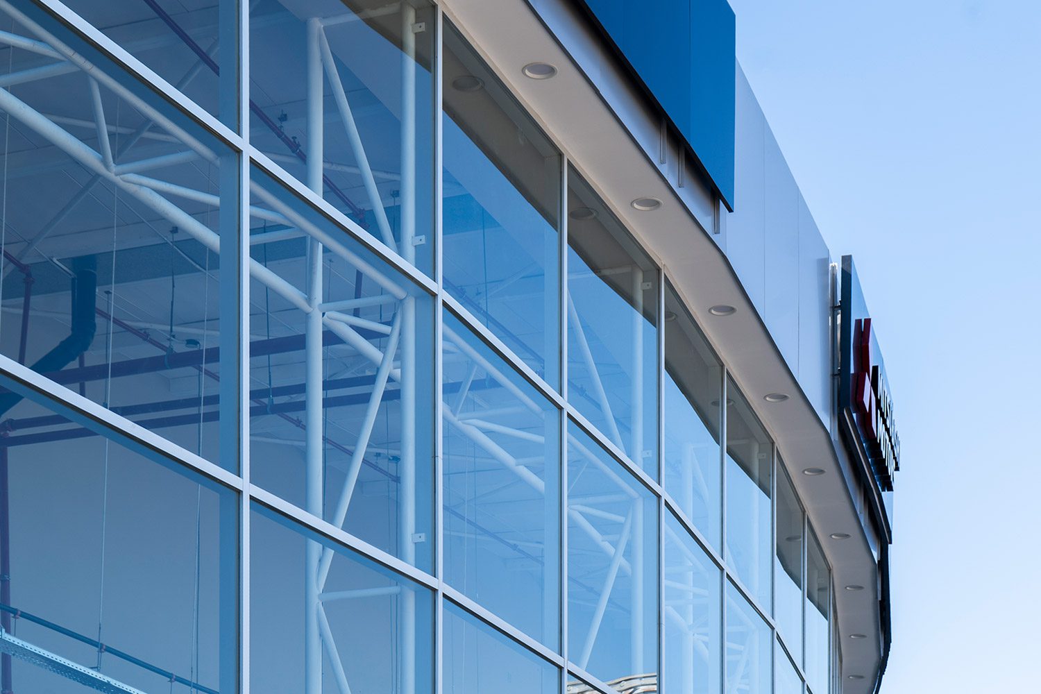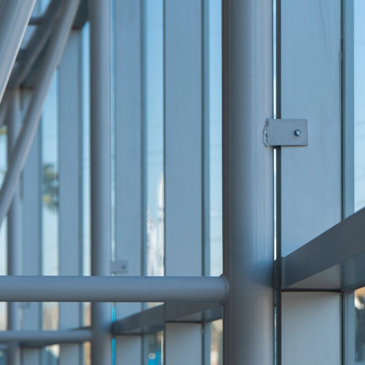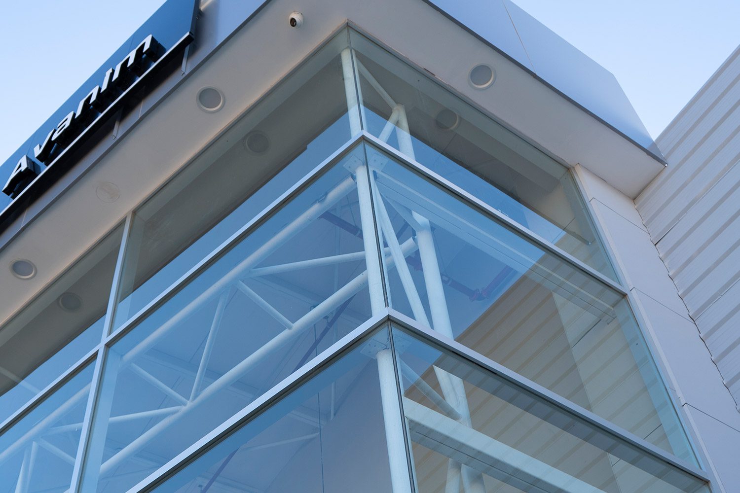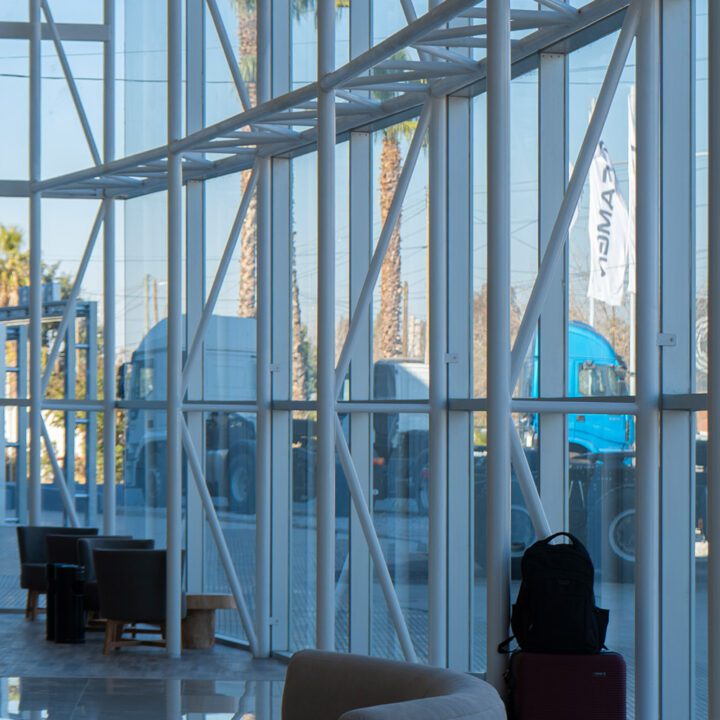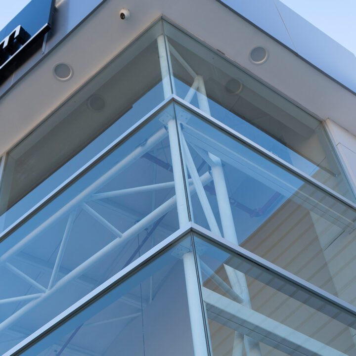 El cerramiento vidriado se resolvió con vidrio laminado 5+5 incoloro, aportando seguridad y máxima transparencia. Completamos el proyecto con revestimientos en panel compuesto de aluminio en los dinteles superiores, integrando materiales de alta calidad para un acabado impecable.