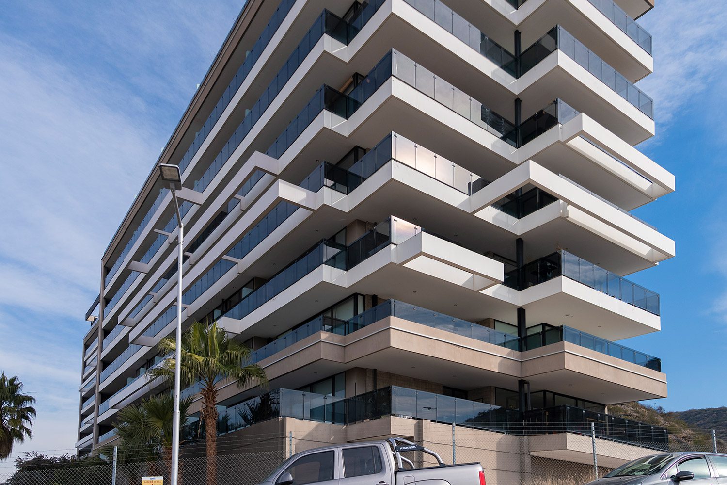 En este edificio de departamentos de alto nivel instalamos carpintería de alta prestación de la línea Clásica 60 de Flamia.