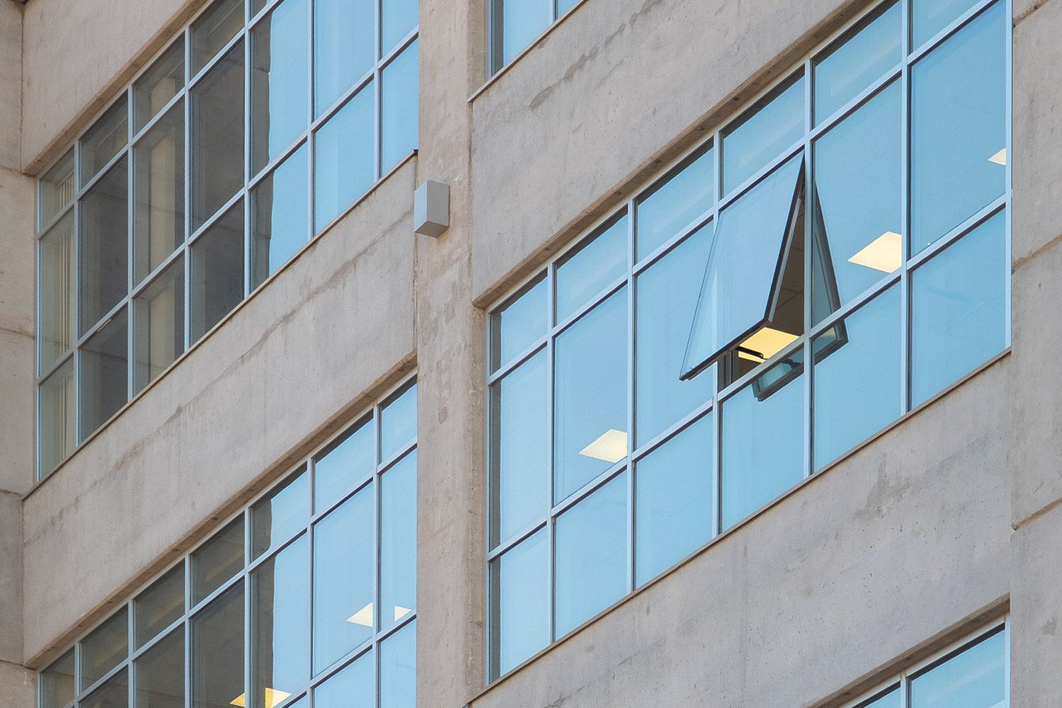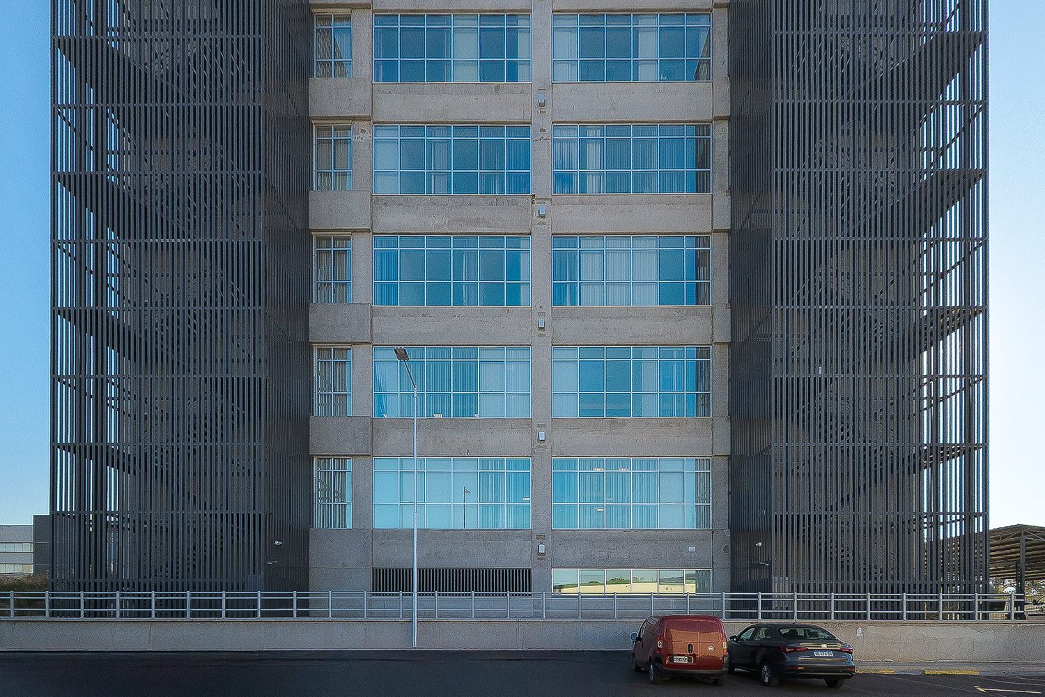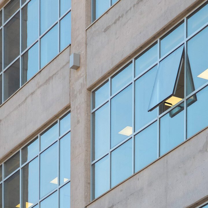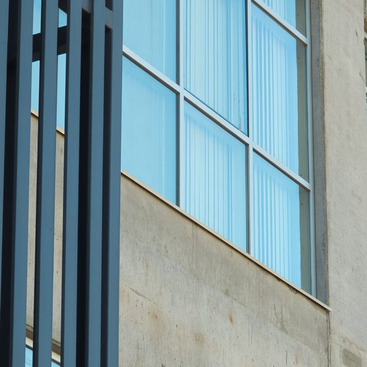 En este edificio desarrollamos un frente integral de aluminio sobre las fachadas principales, acompañado por un alero de panel compuesto de aluminio en el acceso principal. En el interior, ejecutamos tabiquería para la división de oficinas, cuidando tanto la funcionalidad como la estética del espacio de trabajo.