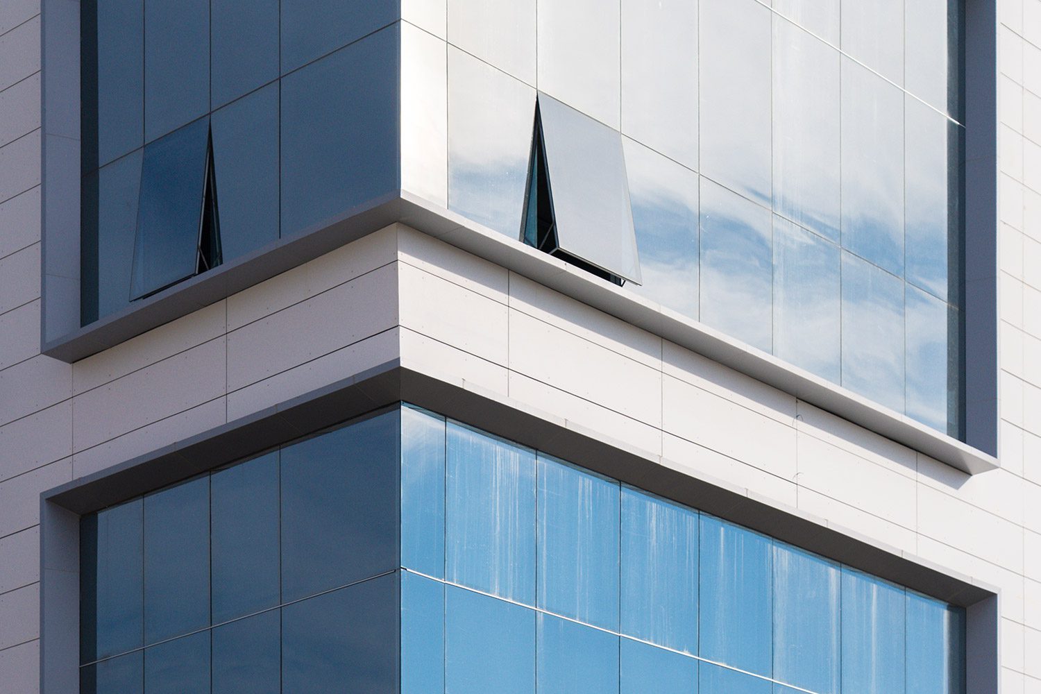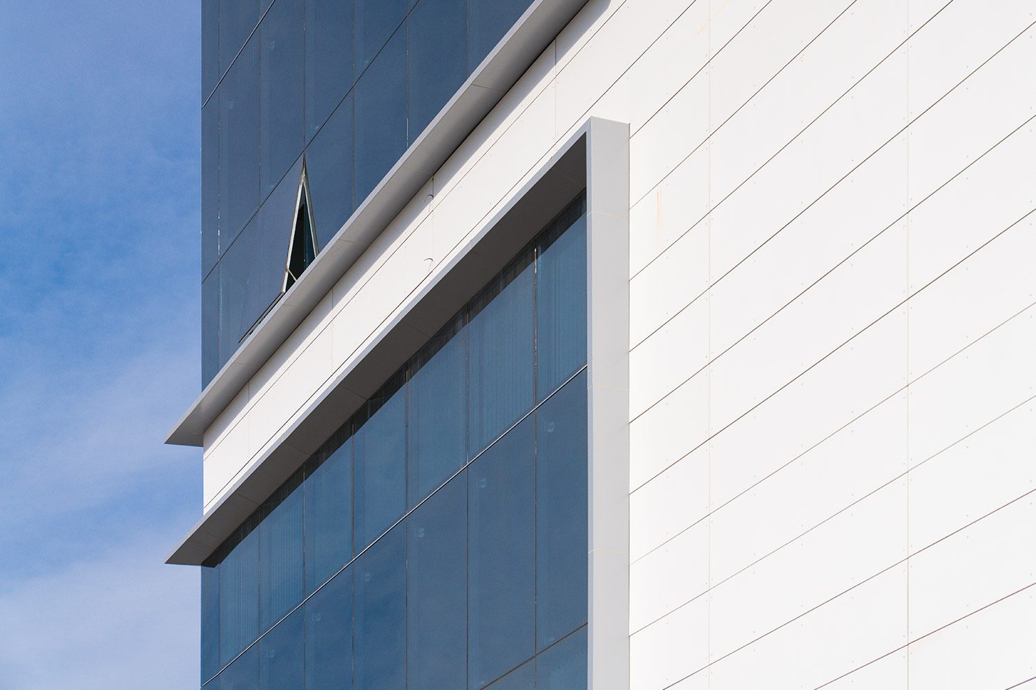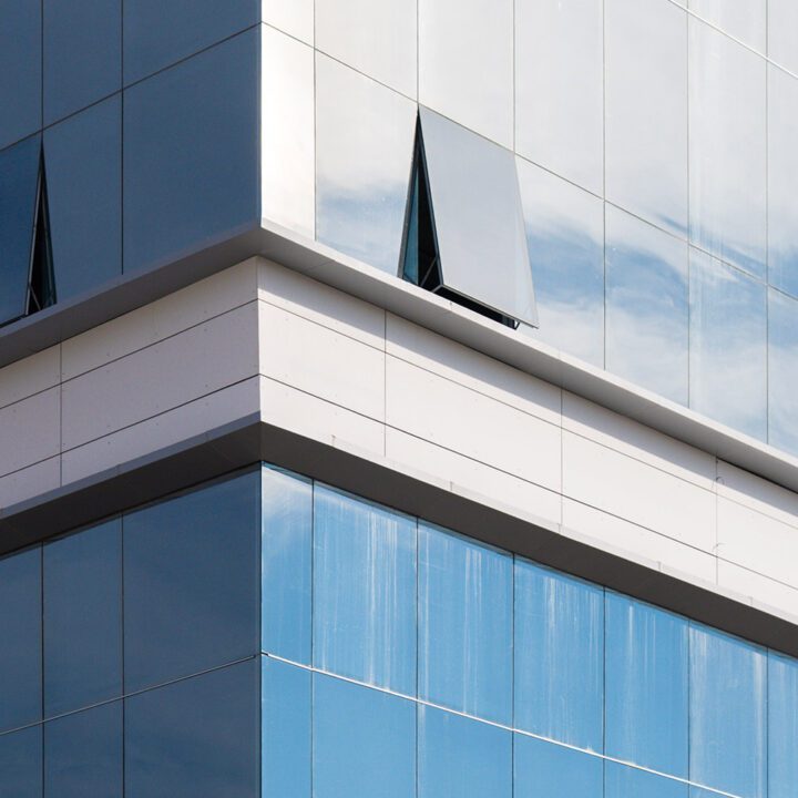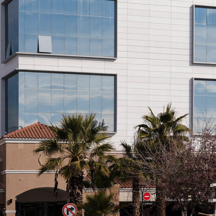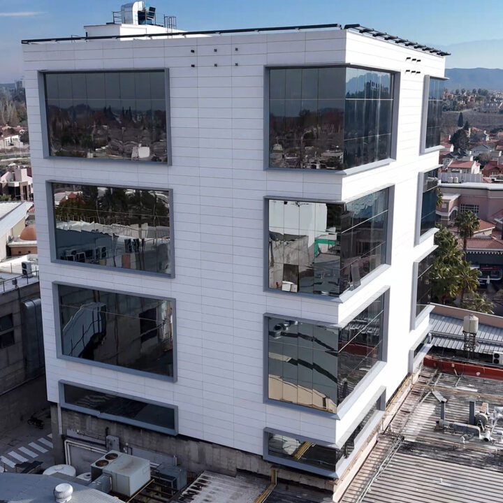 Realizamos el embellecimiento completo de la fachada del edificio, interviniendo con tres sistemas principales: piel de vidrio, fachada ventilada y un marco de panel compuesto de aluminio que enmarca y realza la estructura vidriada. Cada componente fue diseñado e instalado con foco en la estética, la durabilidad y el detalle constructivo.
